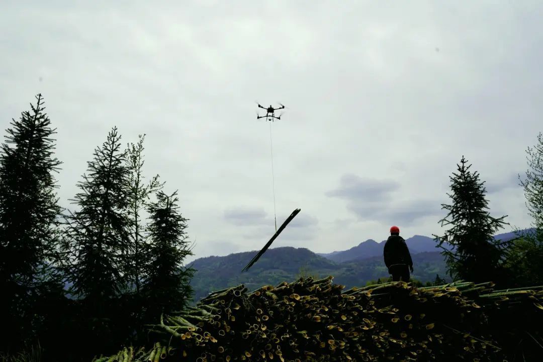 今年,当地林草部门以科技赋能乡村振兴,引进专业团队提供无人机吊运服务,目前全县已发展起无人机专业运输团队3个,配置大型无人机8台,有效解决了竹材出山难题。